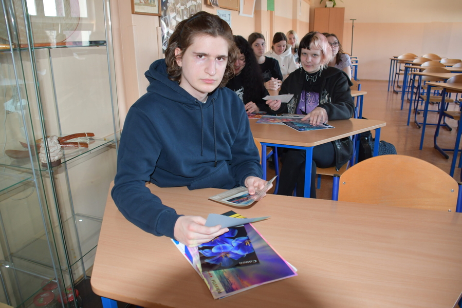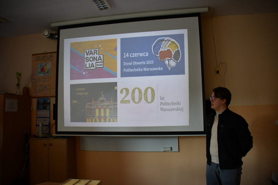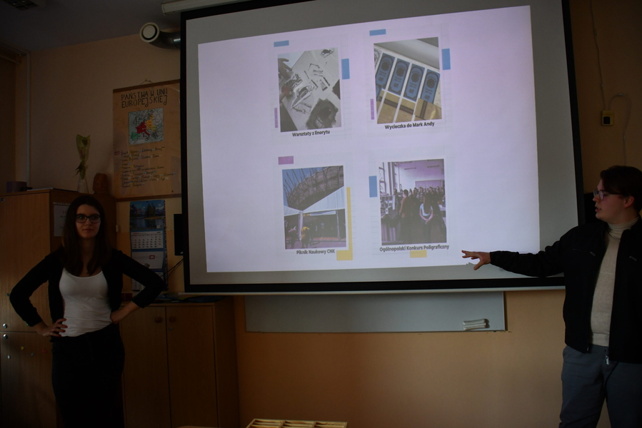 Uczniowie zapoznali się przede wszystkim z możliwościami jakie otwiera studiowanie na kierunku Papiernictwa i Poligrafii na Politechnice Warszawskiej- realizowanych projektów, wymian studenckich, praktyk i współpracy z różnymi instytucjach państwowymi jak np. Polska Izba Druku. Studenci przynieśli też próbki prac wykonywanych w różnych technikach na zajęciach praktycznych, co wywołało uśmiech i komentarze, naszych uczniów, gdyż zastosowane w prezentowanych pracach metody czy materiały były im znane.