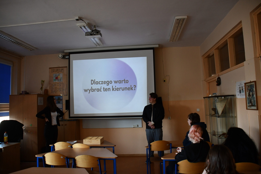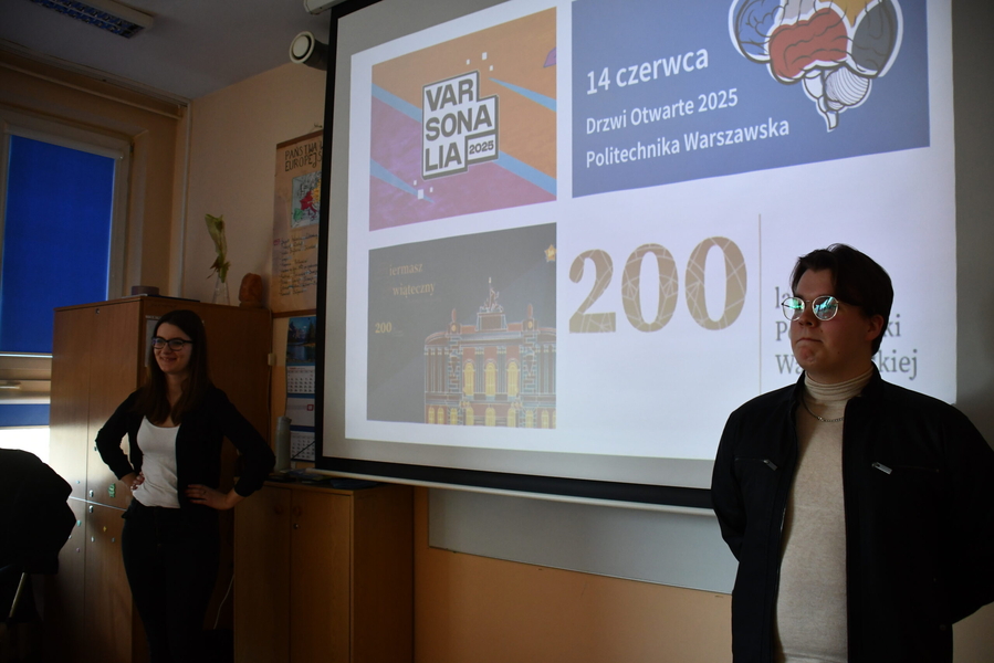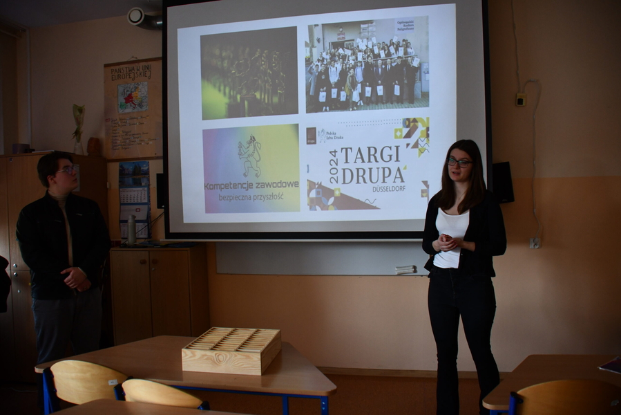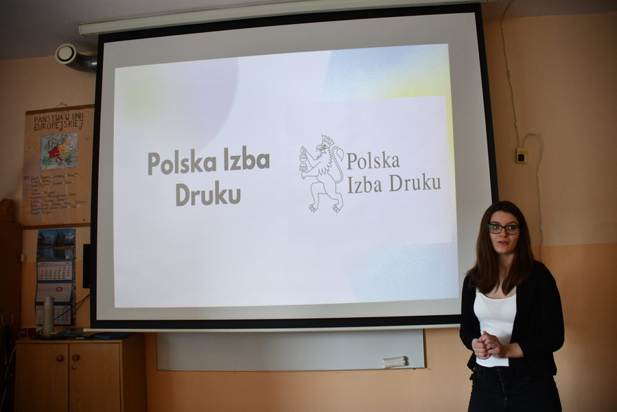 W dniu 9 marca br. w ramach programu doradztwa zawodowego uczniowie klas graficznych: 4EGP, 4FGP oraz 5DGP uczestniczyli w spotkaniu organizowanym w ramach realizacji projektu przez studentów II roku wydziału Papiernictwa i Poligrafii na Politechnice Warszawskiej- Julii Jasik i Karola Gołaszewskiego. Studenci przeprowadzają w całym kraju cyklu spotkań z uczniami ostatnich klas szkół średnich o kierunku Technik Grafiki i Poligrafii Cyfrowej, podczas których zachęcają młodzież, aby dalej kontynuowała wybraną już na etapie szkoły średniej ścieżkę kształcenia zawodowego. Celem takich spotkań jest popularyzacja poligrafii wśród młodzieży oraz zachęcenie ich do wyboru studiów na Politechnice Warszawskiej.
