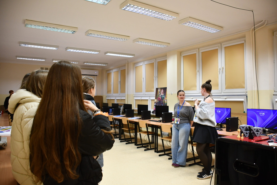 Przybyłych w tym dniu gości witali uczniowie klas informatycznych i graficznych, którzy również oprowadzali po szkole (mamy nadzieję) swoich przyszłych kolegów. Dzień otwarty był interaktywny i angażujący, łączył zwiedzanie z warsztatami tematycznymi.