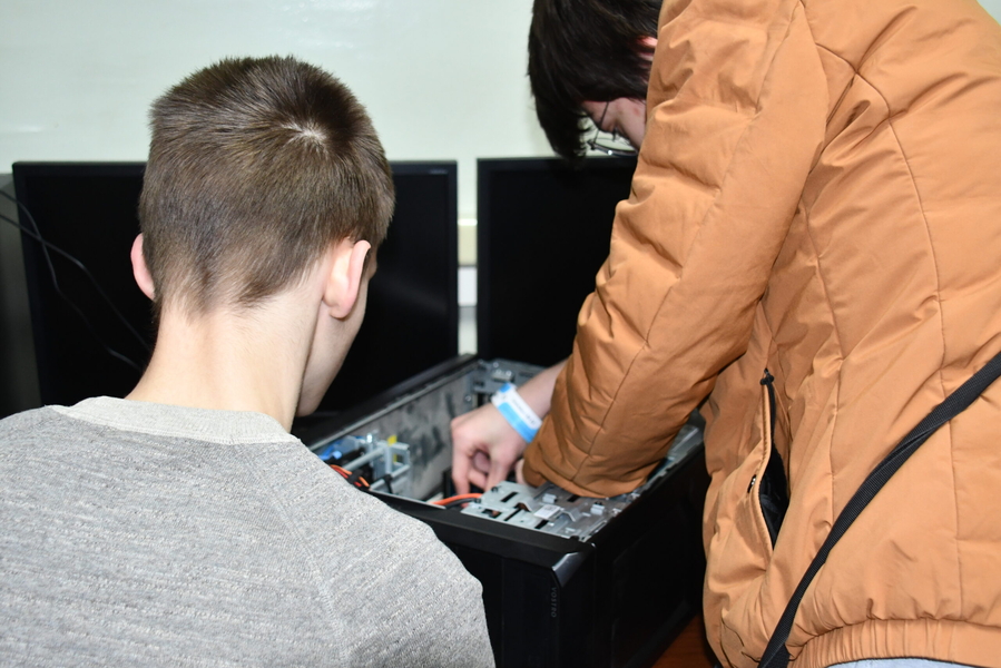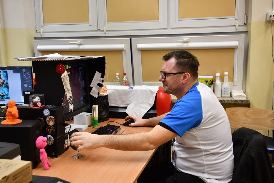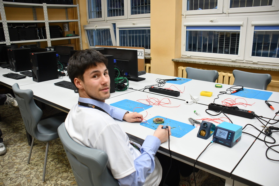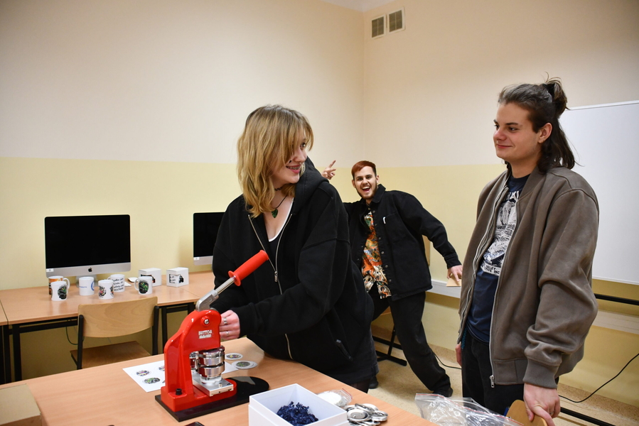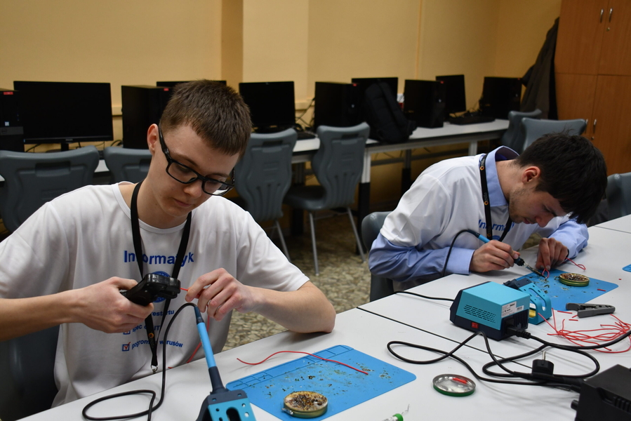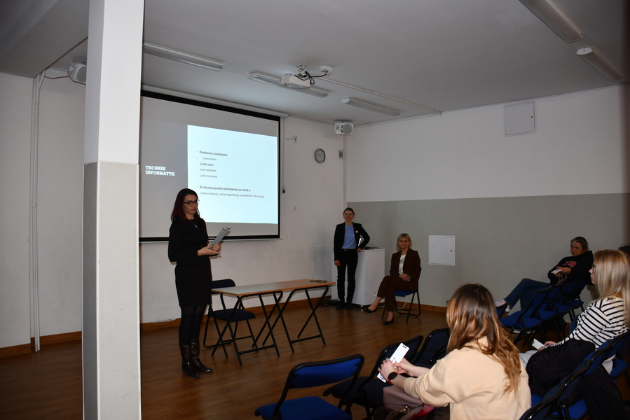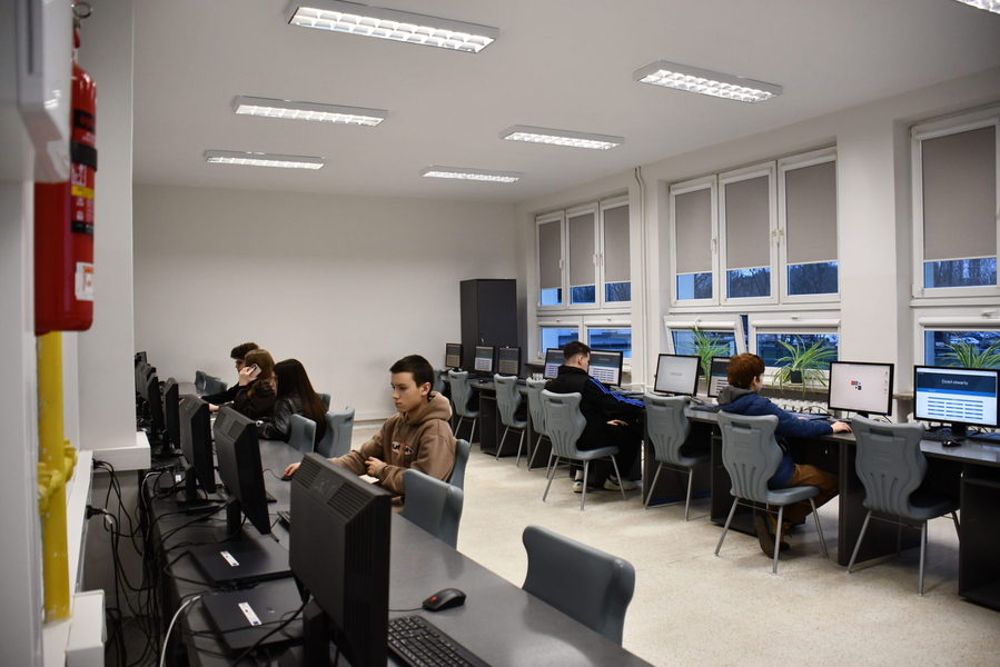Zwiedzanie szkoły rozpoczęło się od obejrzenia świetnie i nowocześnie wyposażonych pracowni przedmiotów zawodowych. Nauczyciele specjalności – technik informatyk oraz technik grafiki i poligrafii cyfrowej – nie tylko opowiadali o tym czego uczniowie uczą się, ale również pokazali praktyczne umiejętności, jakie można zdobyć w danym zawodzie, m.in. budowę i naprawę komputerów, konfigurację sieci lokalnych, tworzenie stron www, obsługa baz danych, przygotowanie do projektowania graficznego, przygotowanie materiałów do druku oraz obsługę maszyn cyfrowych i technologii 3D.