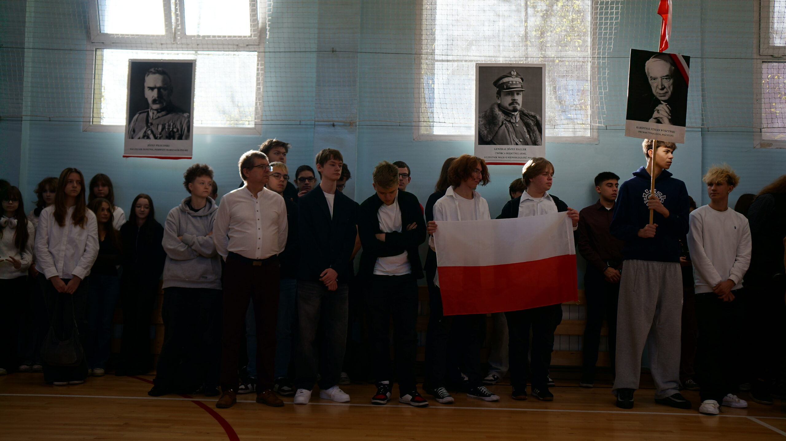Udział społeczności ZS nr 26 w ogólnopolskiej akcji "Szkoła do hymnu" w 105. rocznicę odzyskania Niepodległości - 10.11. 2023 r.