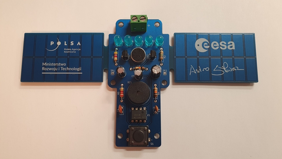 Zestaw edukacyjny, który będzie montowany składa się z płytki PCB w kształcie satelity oraz dwóch obwodów: